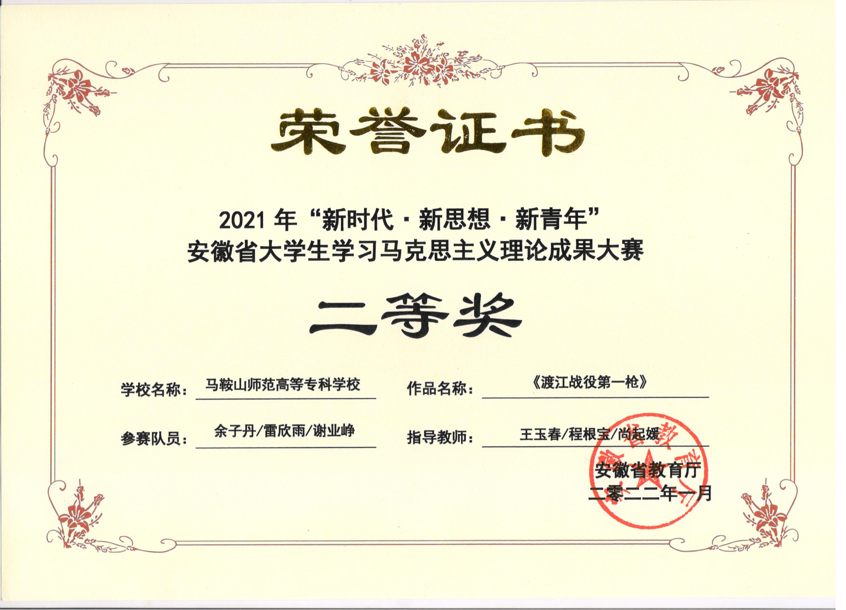 本网讯 在安徽省教育厅公布的2021年“新时代·新思想·新青年”安徽省老员工学习马克思主义理论成果大赛中,由bevictor伟德官网指导的两项作品分别获得一等奖和二等奖的好成绩。