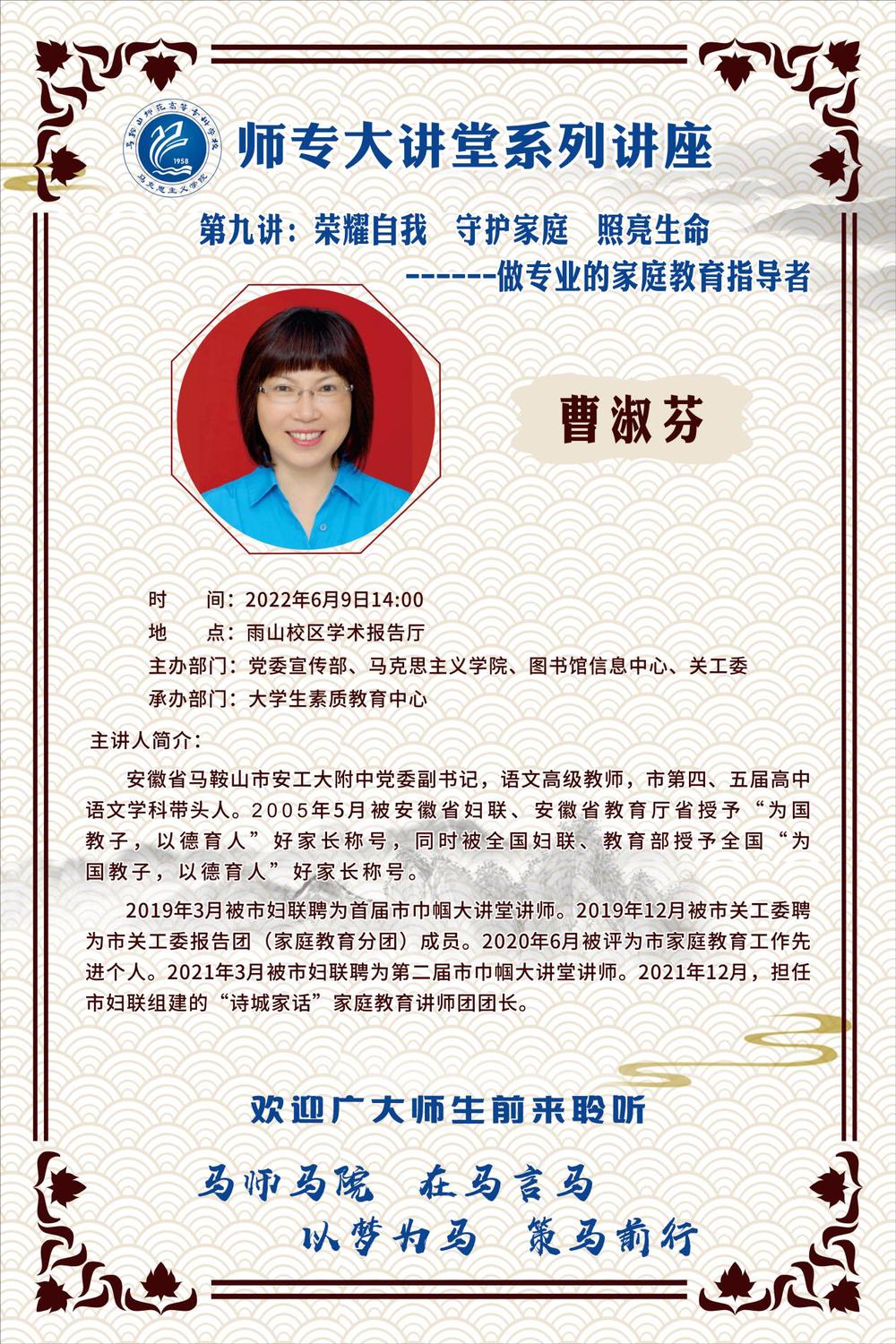 【师专大讲堂系列讲座海报】第九讲:荣耀自我 守护家庭 照亮生命——做专业的家庭教育指导者