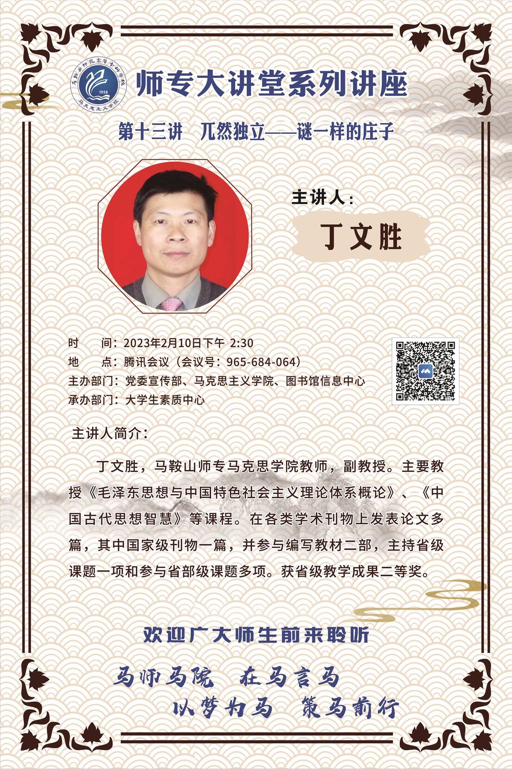 【师专大讲堂系列讲座海报】第十三讲:兀然独立——谜一样的庄子