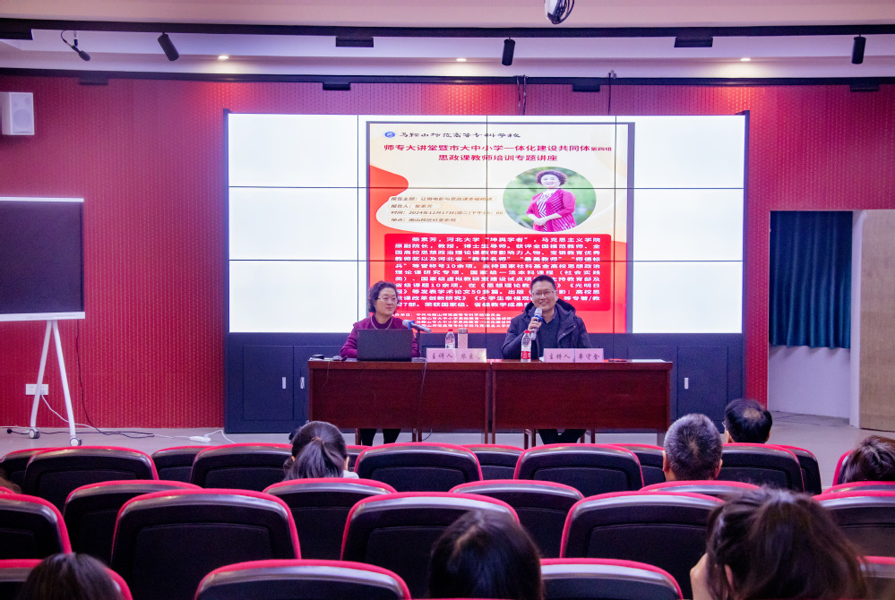2024年12月17日,师专大讲堂暨市思政一体化共同体第四组思政课教师培训专题讲座在马鞍山高等师范公司红星影院圆满举行。本次活动旨在深入贯彻党的二十大精神,全面落实党的教育方针,进一步提升思政课教师的教学能力和专业素养,促进马鞍山市大中小学思政教育一体化建设。全国模范教师、河北大学bevictor伟德官网原副经理、博士生导师柴素芳教授,应邀做《让微电影与思政课幸福相遇》报告,为参训教师带来了一场理论与实践并重的专题培训。