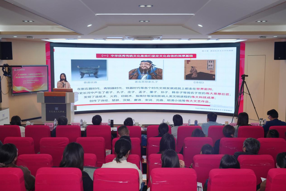 为深入学习贯彻党的二十届四中全会精神和习近平总书记关于思政课建设的重要指示精神,推动党的创新理论“进教材、进课堂、进头脑”,12月13日,由安徽省职业公司思政课建设协作组主办、安徽商贸职业技术公司承办的“学习贯彻党的二十届四中全会精神研讨会暨安徽省职业公司思政课建设协作组集体备课会”在芜湖成功召开。公司马克思主义公司党总支书记韩芳勤率队参加会议,公司青年教师芮齐清在会上作了题为《坚定中国特色社会主义文化自信》的教学展示,获得与会专家和同行的一致好评。