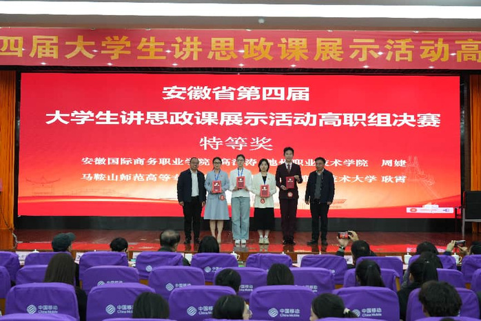 由芮齐清、张国娟老师指导,郑苏涵、张荣荣同学主讲的作品《我们的江山人民的史诗》,以深刻的理论阐释和出色的现场讲授荣获最高奖项特等奖,两位老师获评“优秀指导教师”。由张春艳、张玲老师指导,周如芸同学主讲的作品《皖地薪火 青春赓续》获决赛三等奖。